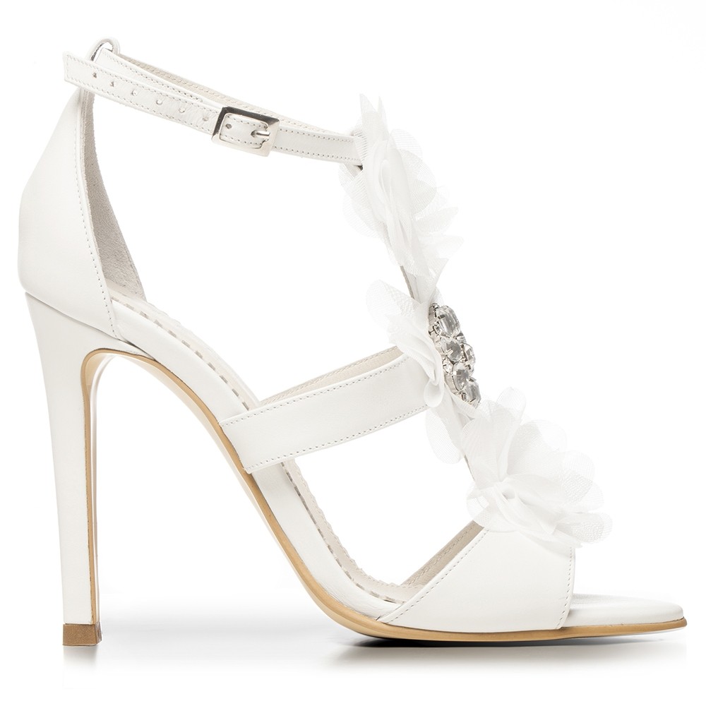 Sandale de mireasa albe cu accesoriu pietre cristal Bianca
